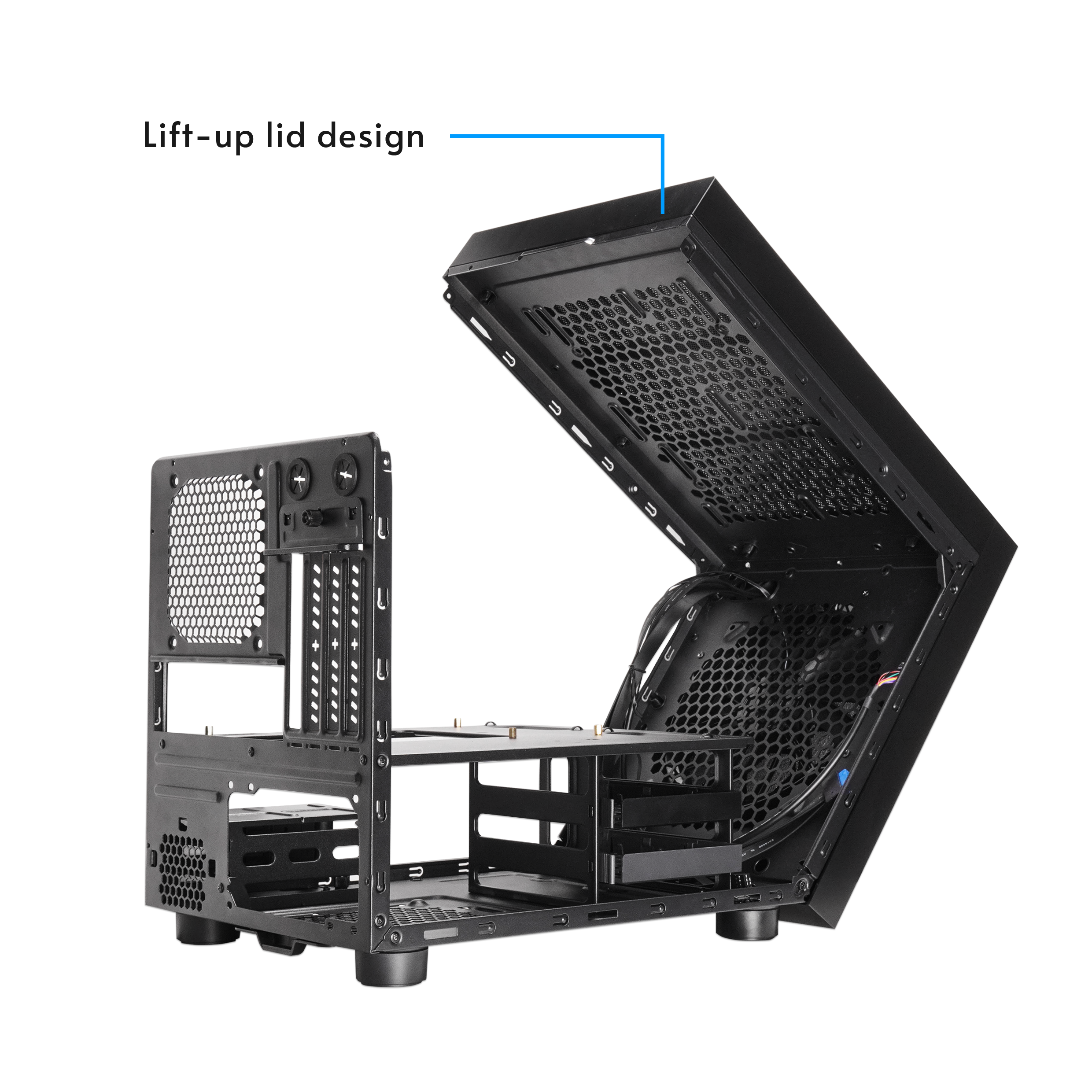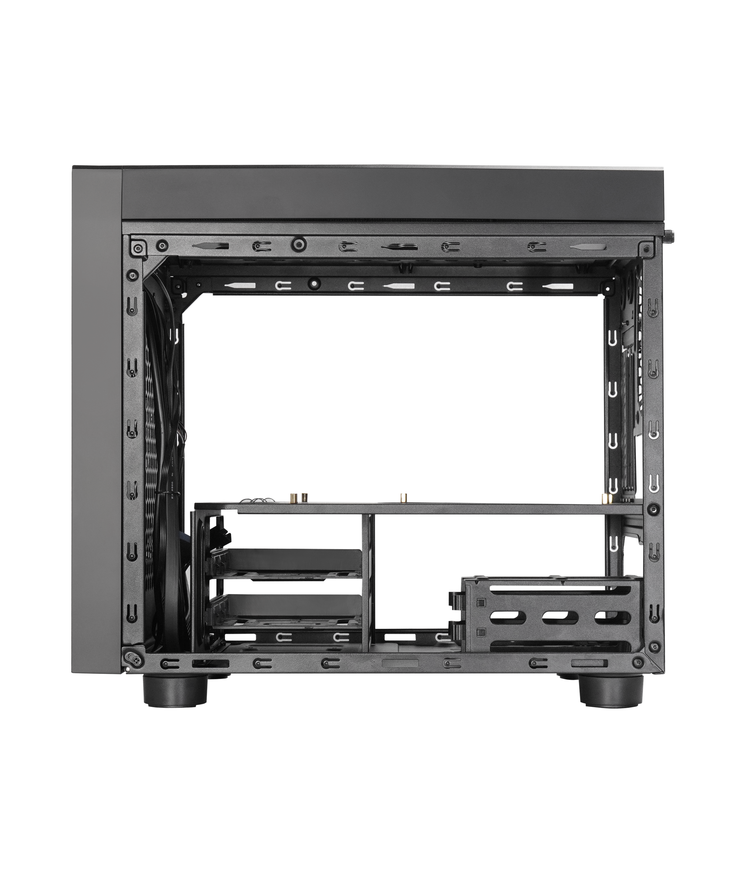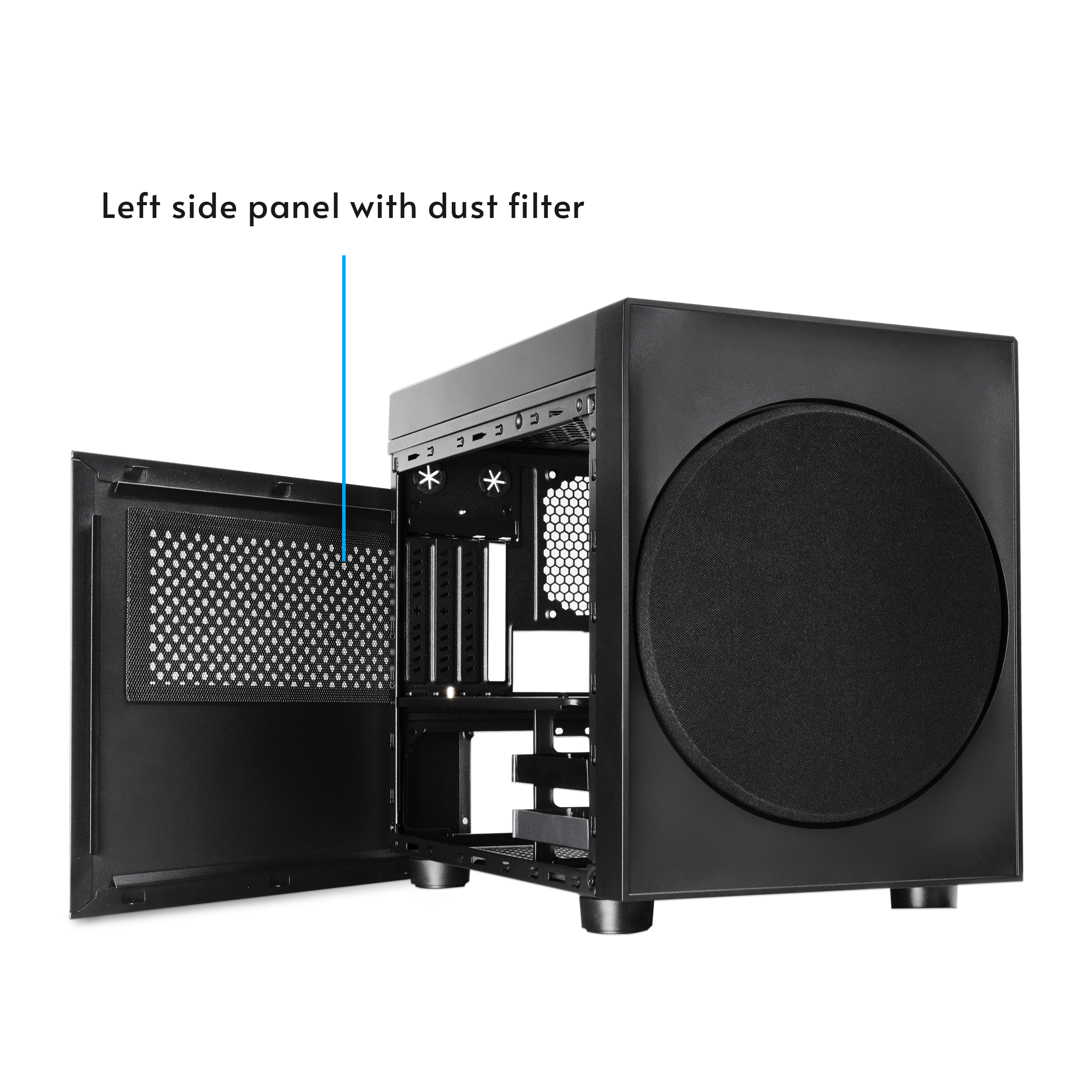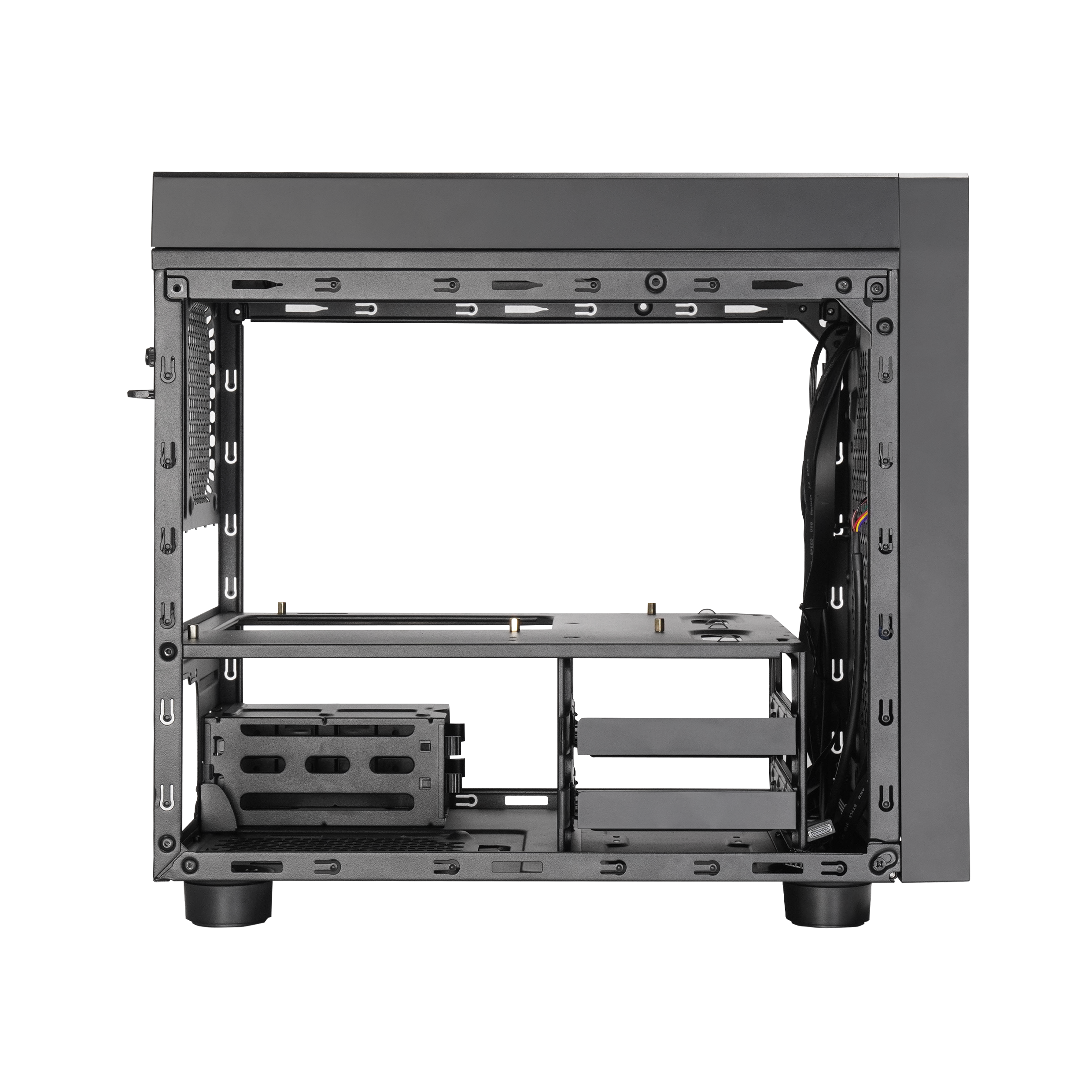 CI-03B-OP — это компактный корпус формата mATX в виде куба с уникальным дизайном в стиле Hi-Fi и современным внешним видом. Его эстетика вдохновлена мебельным дизайном, что позволяет ему гармонично вписываться в минималистичные домашние интерьеры.